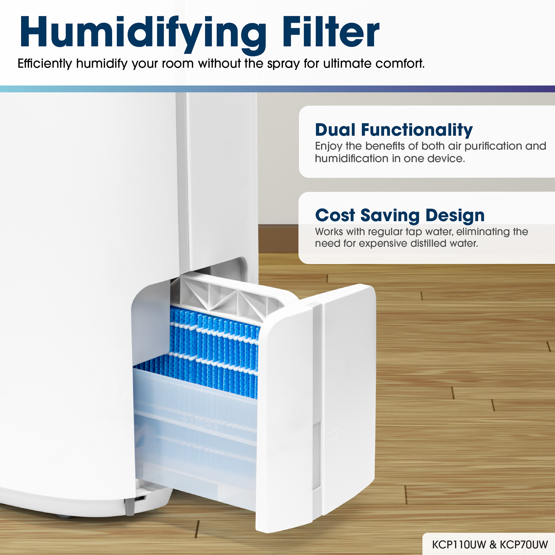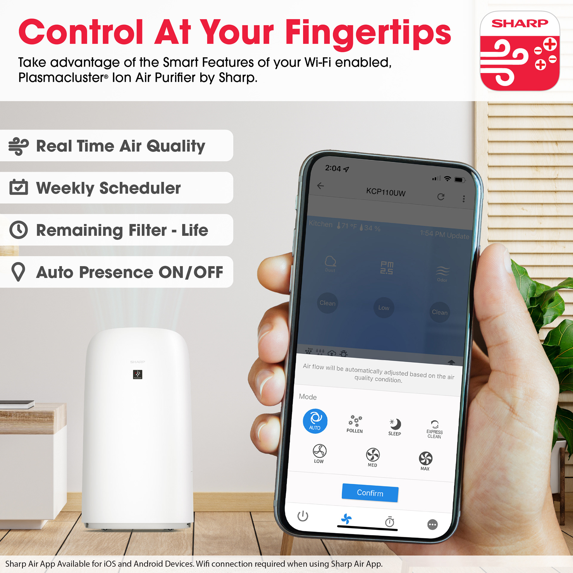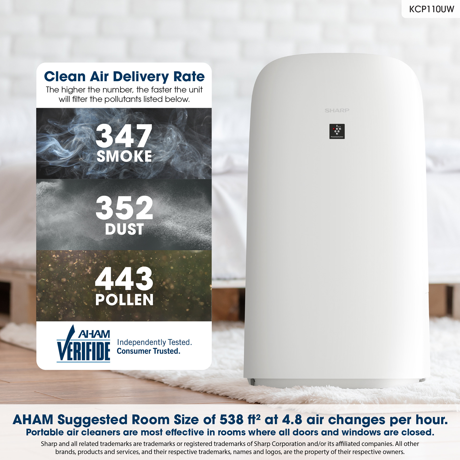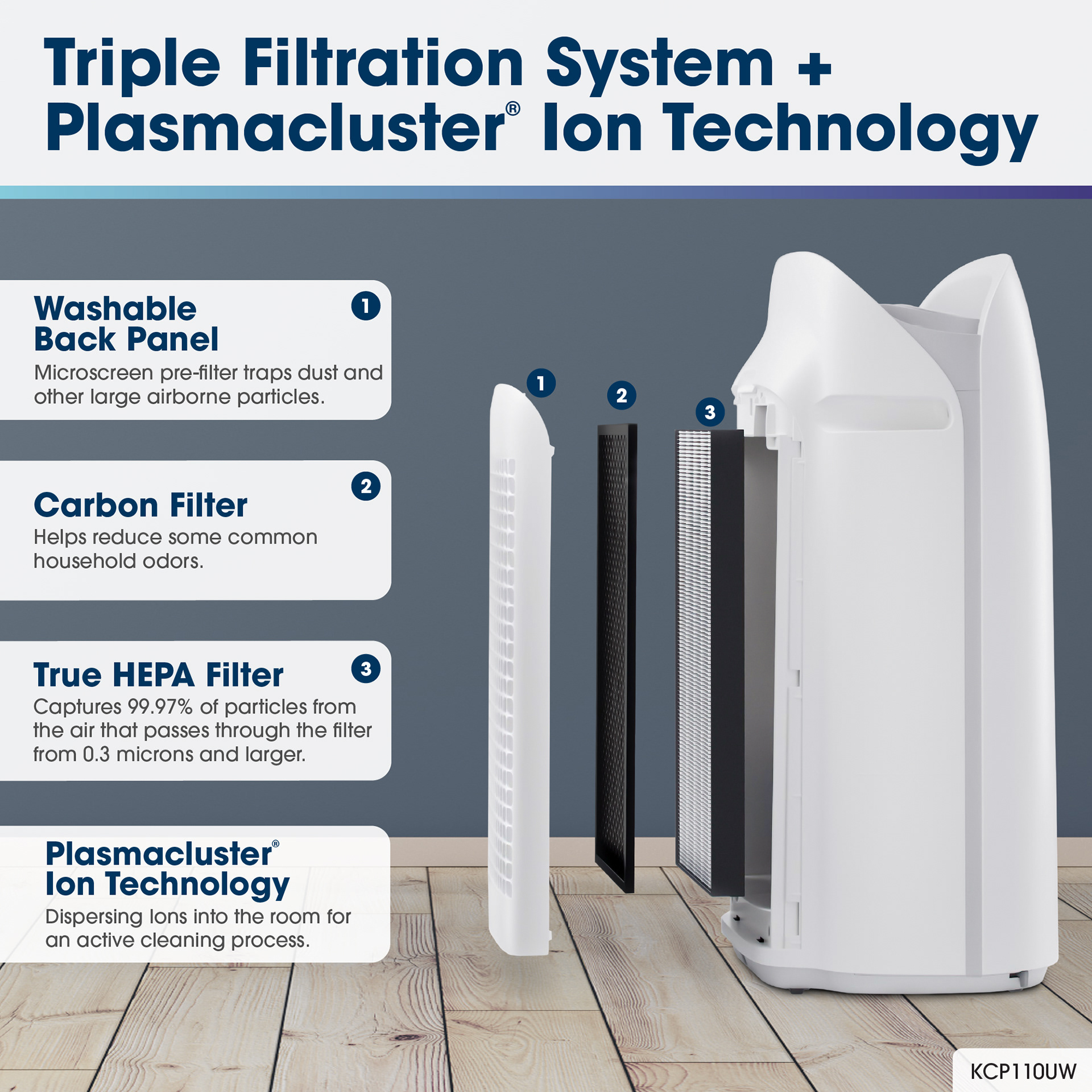 Sharp Smart Plasmacluster Ion Air Purifier with True HEPA + Humidifier for Extra Large Rooms (KCP110UW)