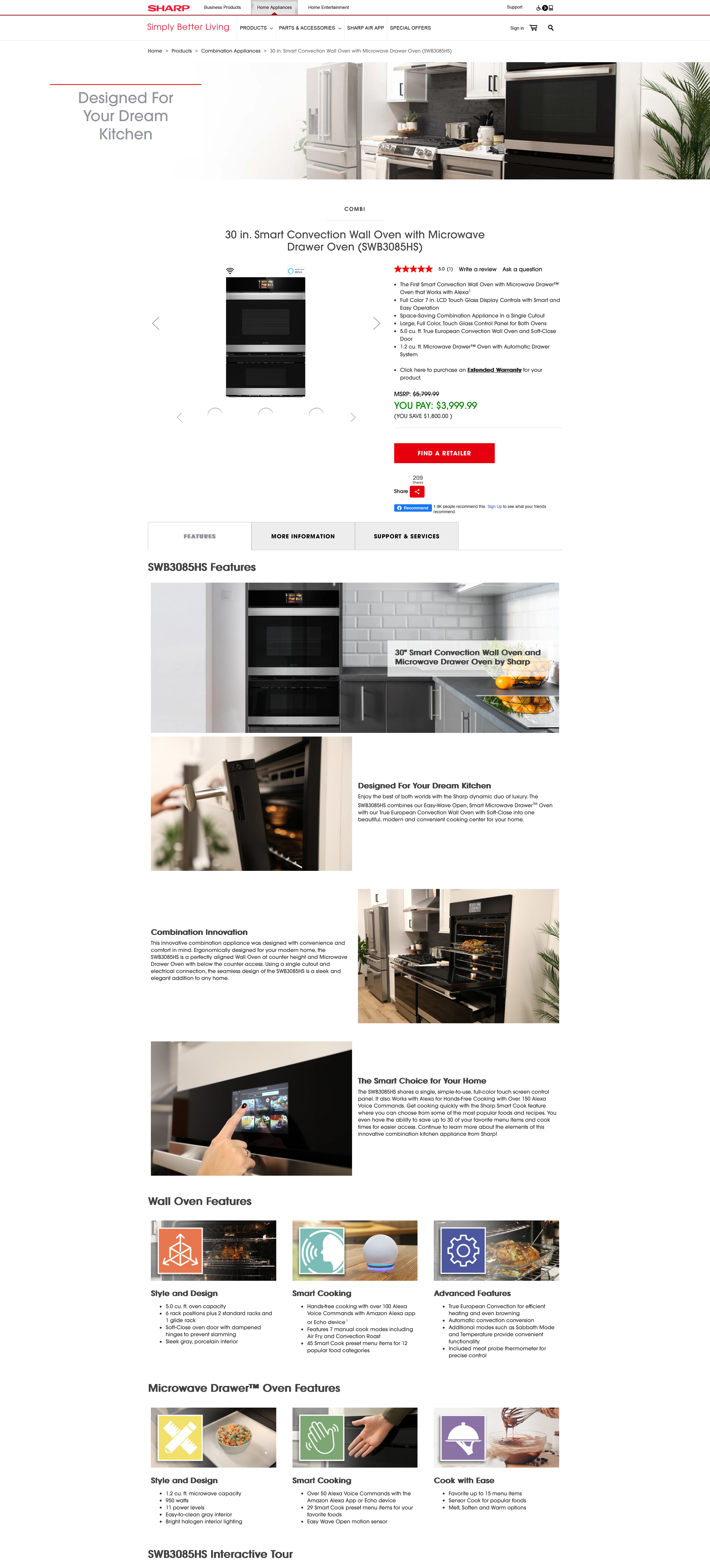 30 in. Smart Convection Wall Oven with Microwave Drawer Oven (SWB3085HS)
