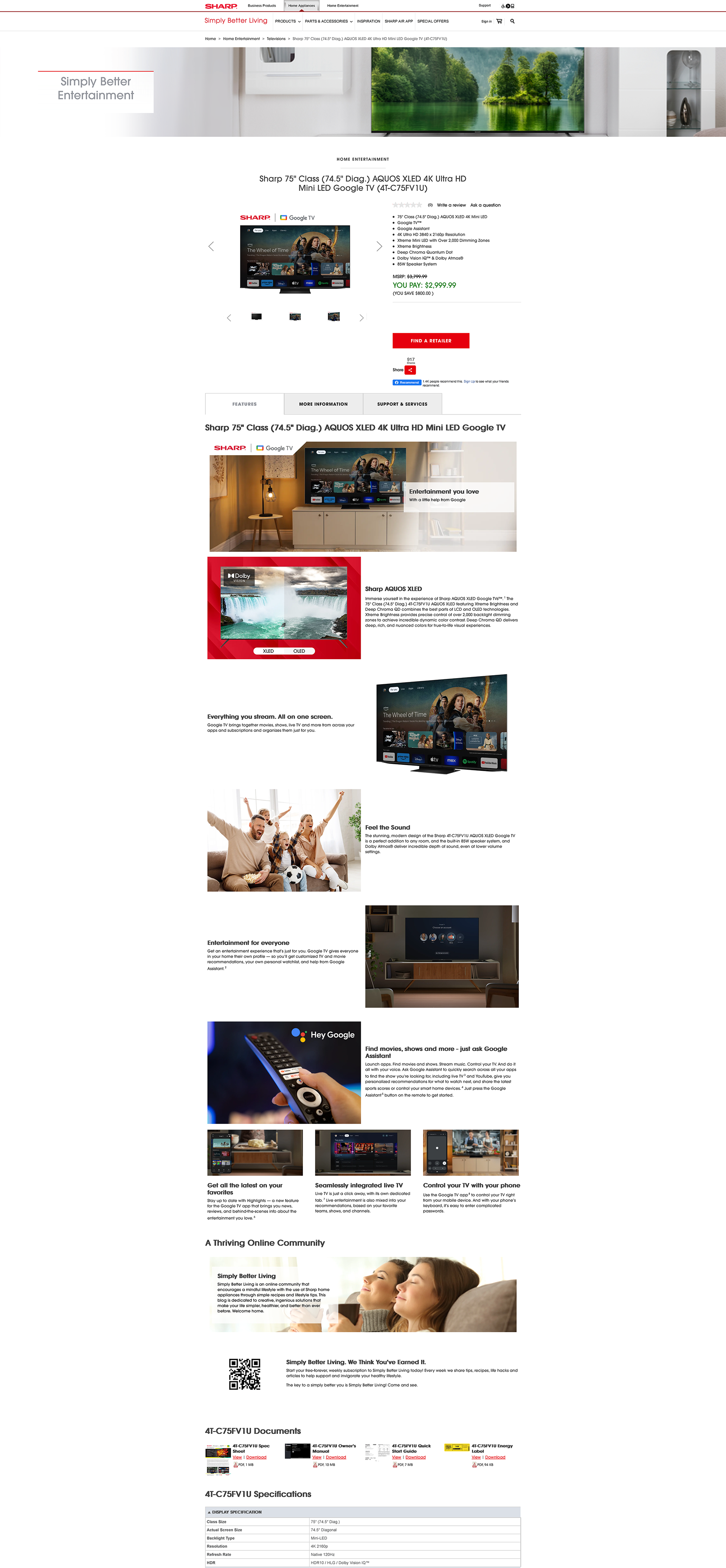 Sharp 75" Class (74.5" Diag.) AQUOS XLED 4K Ultra HD Mini LED Google TV (4T-C75FV1U)